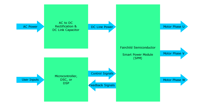 Fig. 2. A simple ac induction motor control can use advanced technology such as Fairchild's Smart Power Module.