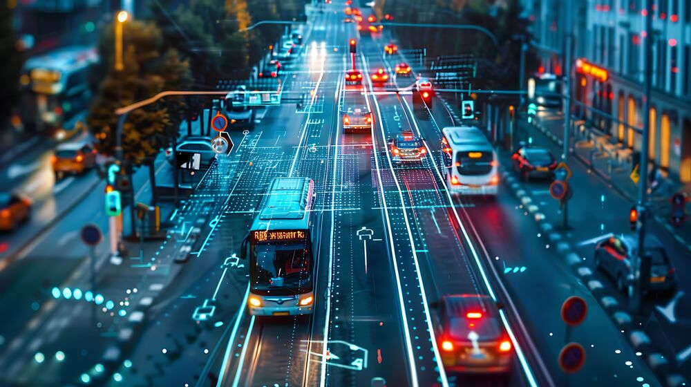 Figure 1: Smart traffic lights can optimize bus routes and traffic flow. (Source: zaheer/stock.adobe.com; generated with AI)
