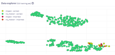 Figure 1: Edge Impulse's data explorer can provide a visual mechanism to evaluate how a machine-learning model is classifying training data. (Source: Green Shoe Garage)
