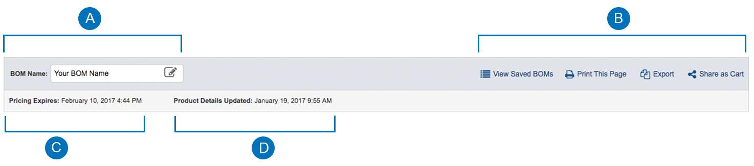 Malapit sa itaas ng Results Page ng BOM ay ang Toolbar ng BOM. Sa seksyong ito, mabilis na maa-access ang ilang pangkaraniwang function ng BOM Tool kasama na ang: