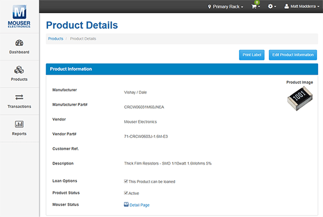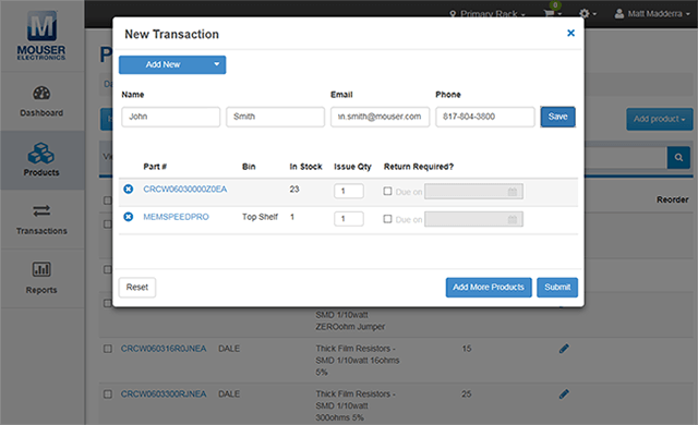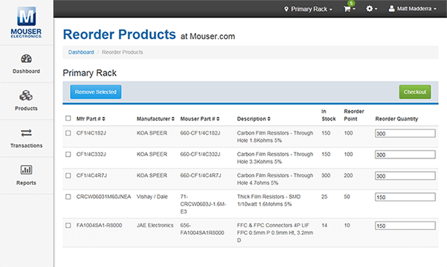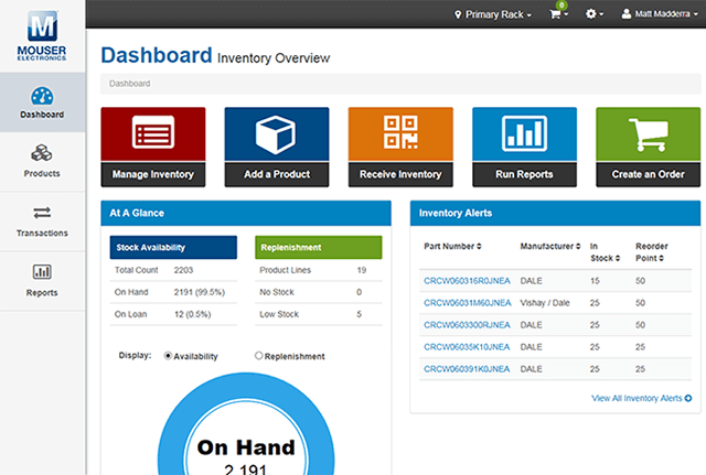 Ang platform ng Inventory Management ng Mouser ay isang web-based system para madaling mapangasiwaan at masubaybayan ng mga organisasyon ang mga on-premise stock nila ng mga electronic component at iba pang kaugnay na mga supply.