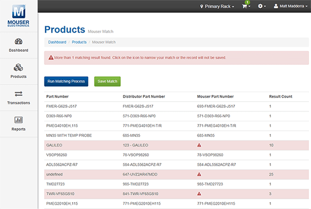- I-link ang mga produkto sa imbentaryo mo sa mga numero ng piyesa ng Mouser para sa madaling pag-order muli